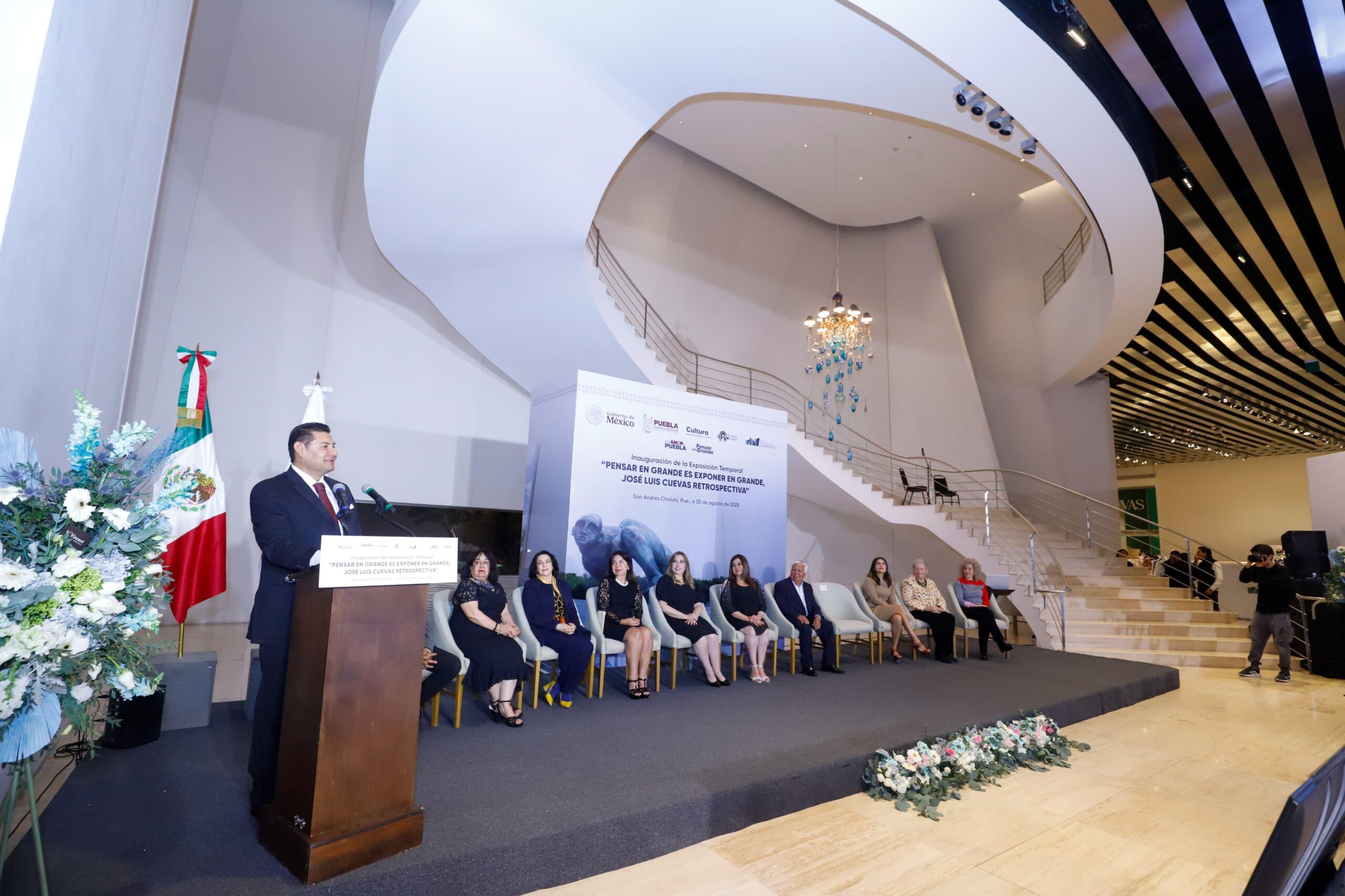 SAN ANDRÉS CHOLULA, Pue.- “El Museo Internacional del Barroco, que ahora ya es de las y los poblanos, está de gala, estamos despidiendo a la exposición de Salvador Dalí y terminamos el año con la obra del gran José Luis Cuevas, qué gran orgullo”, afirmó el gobernador Alejandro Armenta durante la inauguración de “Pensar en Grande es Exponer en Grande. José Luis Cuevas Retrospectiva”.
