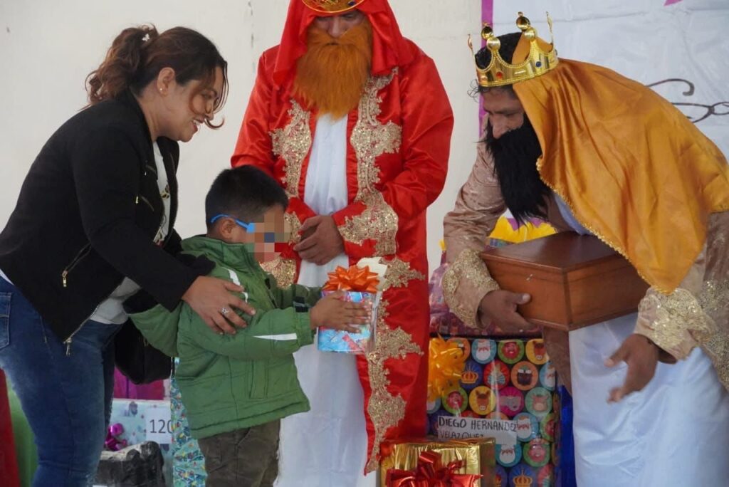 De esta forma, se realizó la entrega de 421 regalos, gracias a la participación de Melchor, Gaspar y Baltazar, así como de personas solidarias que se sumaron para hacer posible esta actividad. Las y los asistentes también disfrutaron de ponche, roscas, aguinaldos, la presencia de payasos y diversas dinámicas recreativas.