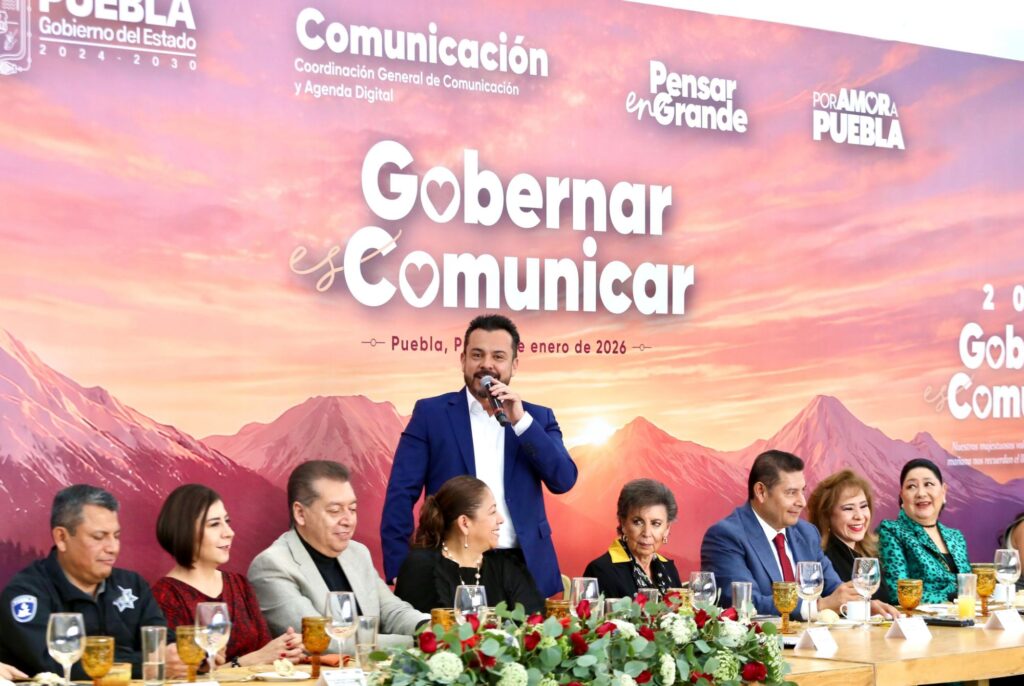 El mandatario subrayó el principio «Gobernar es Comunicar», y reconoció el compromiso y Amor a Puebla de los formadores de opinión pública.
