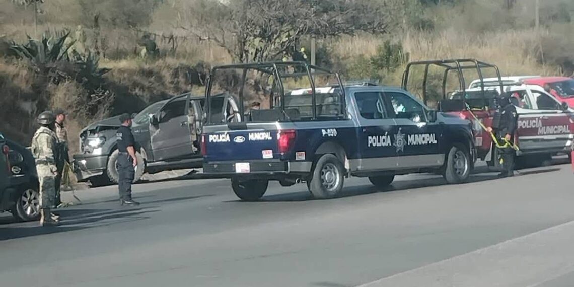 En el sitio fue abandonada una camioneta con múltiples impactos de arma de fuego, mientras que la unidad color rojo terminó chocada; dentro de esta última se encontró a una persona sin vida.