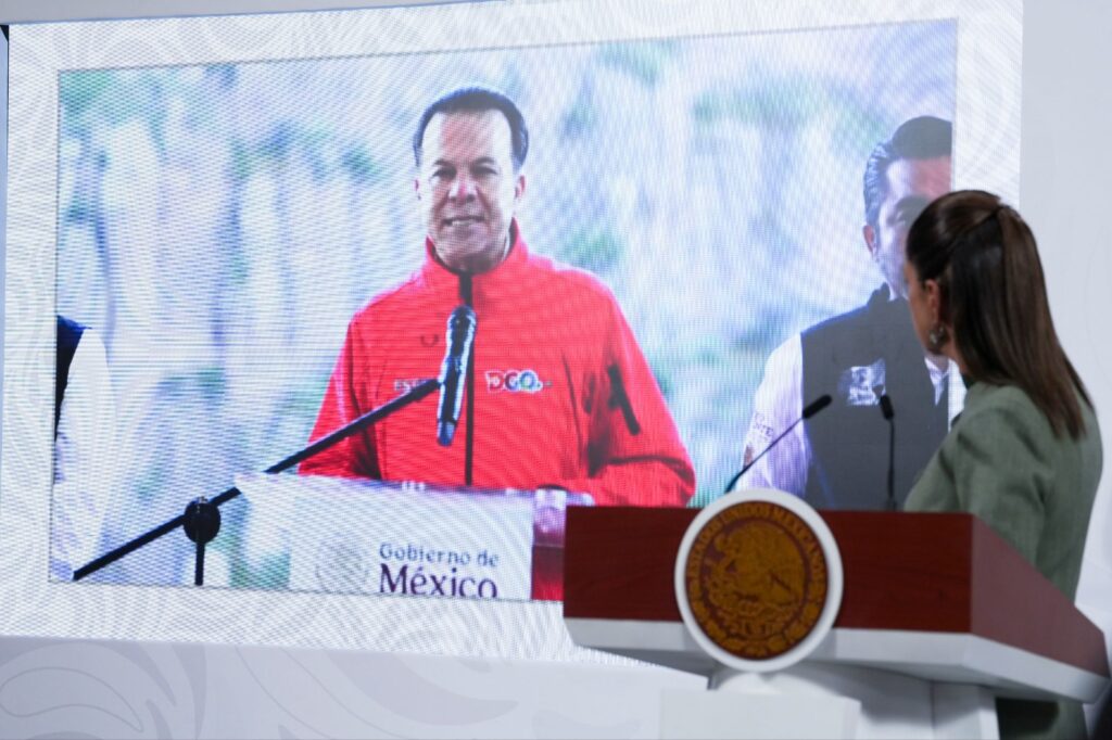 “Vamos a hacer una conexión, vía remota a Durango, están ahí Efraín Morales y el gobernador, Esteban Villegas, porque el día de hoy se da el banderazo para el inicio de la construcción de la Presa el Tunal II”, resaltó la Jefa del Ejecutivo Federal desde el Salón de Tesorería de Palacio Nacional.