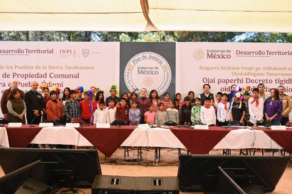 En Santa Tulita, Guadalupe y Calvo, en la Sierra Tarahumara, firmó el decreto para restituir más de 3 mil hectáreas de tierras al pueblo ódami.