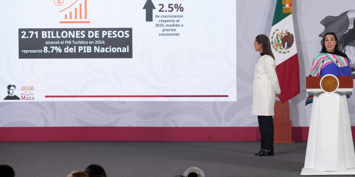 Detalló que se alcanzaron 2.71 billones de pesos del Producto Interno Bruto Turístico (PIBT), alcanzando el registrado en 2024 y representando el 8.7 por ciento del PIB Nacional; además la Inversión Extranjera Directa Turística (IEDT), durante el tercer trimestre de 2025 fue de 787.6 millones de dólares (mdd), esto representa un crecimiento del 40.3 por ciento respecto a 2024, destacando la inversión en departamentos y casas con servicios de hotelería, así como hoteles con otros servicios integrados. También el empleo turístico tuvo un crecimiento con 5 millones de puestos de trabajo, por lo que uno de cada 10 empleos a nivel nacional corresponde al turismo y en noviembre de 2025 se registró un crecimiento del 4.9 por ciento en el número de trabajadores asegurados en el sector.