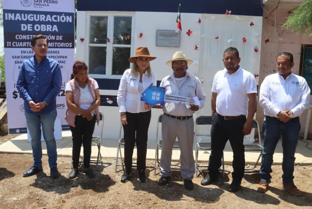 San Pedro Cholula, Puebla.- El Gobierno que encabeza la Presidenta Paola Angon continúa respondiendo a las familias cholultecas que más lo necesitan, con la entrega de los primeros 11 cuartos dormitorio -de 30 que se construirán este año- en la Junta Auxiliar de Santa María Acuexcomac, siendo ésta la primera etapa del programa “Vivienda y Familia”, operado por la Secretaría de Bienestar Sustentable y Sostenible.