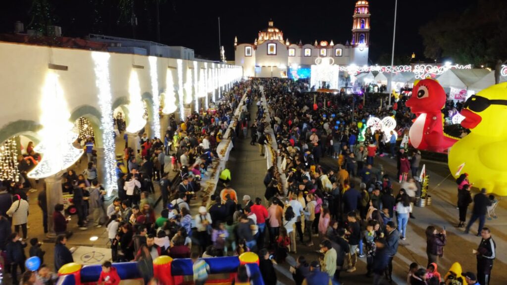 Alrededor de 10 mil personas pudieron compartir la rosca monumental de 370 metros y se repartieron más juguetes durante la rifa en Plaza de la Concordia.San Pedro Cholula.- La Presidenta Municipal Paola Angon, junto a las familias, además de integrantes del ayuntamiento y regidores, realizaron la partida de Rosca Monumental de 370 metros lineales en Plaza de la Concordia, que fue elaborada por 26 panaderías locales, para compartir y fortalecer las tradiciones con motivo del festejo de día de Reyes Magos.