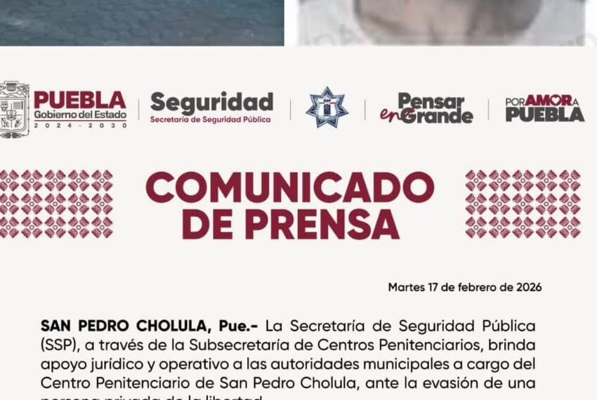 La Secretaría de Seguridad Pública (SSP), a través de la Subsecretaría de Centros Penitenciarios, brinda apoyo jurídico y operativo a las autoridades municipales tras la evasión de una persona privada de la libertad del Centro Penitenciario de San Pedro Cholula.