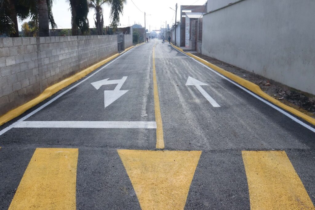 Las y los vecinos de Zacapechpan estrenan las calles Josefa Ortiz de Domínguez y Benito Juárez, en las que se colocaron más de 4 mil metros cuadrados totales de carpeta asfáltica.