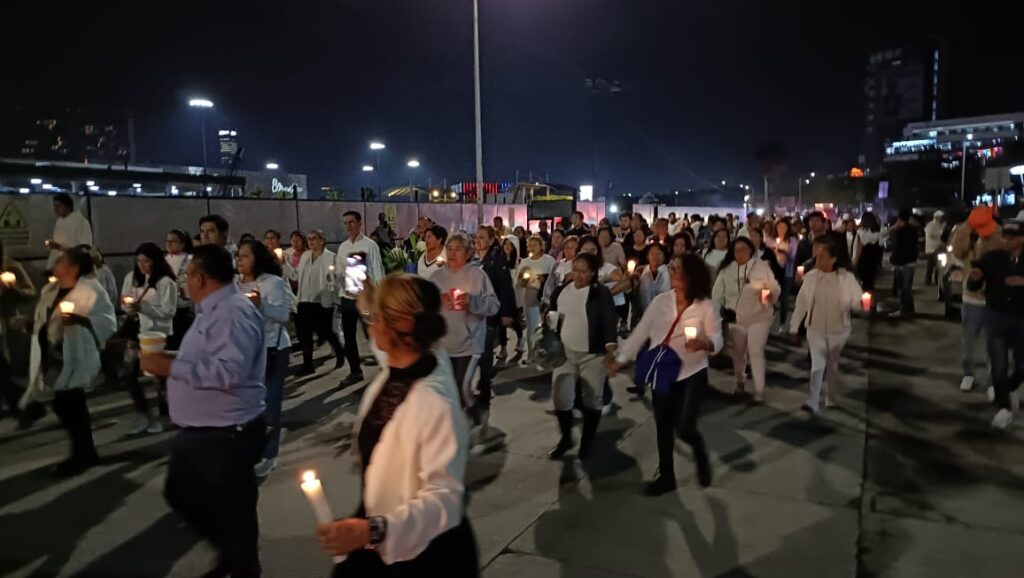 Vestidos de blanco y con una vela blanca, los participantes caminaron de forma pacífica en la zona de Angelópolis, lanzando consignas contra el fraude electoral en San Pedro Cholula.