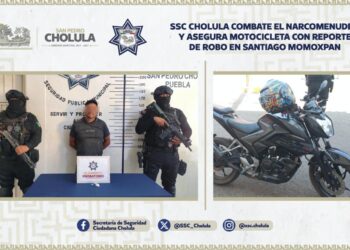 SSC Cholula combate el narcomenudeo y asegura motocicleta con reporte de robo en Santiago Momoxpan