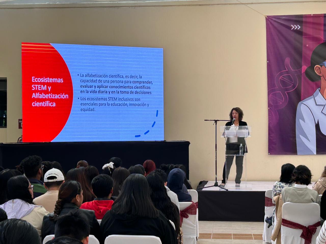 El congreso contó con la presencia de investigadoras de alto nivel, como la especialista en Biología que lidera proyectos de Bioinformática Inclusiva, Claudia Mancilla Simbro. Así también, la doctora de la BUAP experta en análisis de materiales, Mónica Araceli Olea Amezcua; la académica e investigadora de la Benemérita Universidad Autónoma de Puebla, integrante del Consejo Mexicano de Investigación Educativa, Yadira Navarro Rangel quien desarrollo la ponencia “Aprender, crear, liderar: mujeres docentes como motor de la alfabetización científica”.