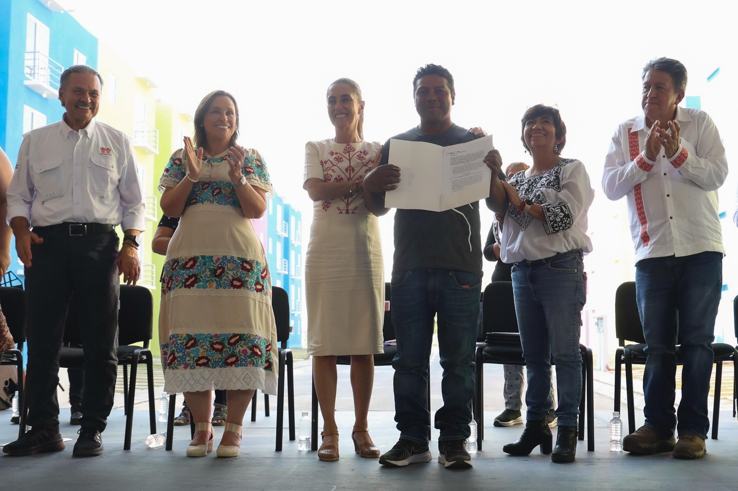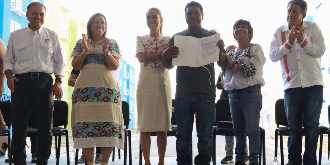 - La Jefa del Ejecutivo Federal también entregó constancias a 20 familias con ajustes en sus créditos, 20 liberaciones, 500 escrituras del INSUS y 500 liquidaciones del Fovissste